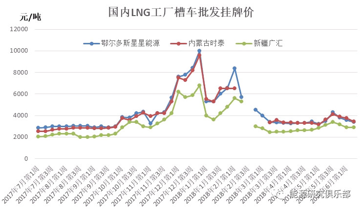 国内市场LNG价格总体平稳。二季度,国内LNG槽车批发价基本保持平稳▪…。但5月中上旬★,受需求增长、上游管道气供应不足、进口LNG价格上涨的影响○▪◁,价格推涨。随后市场需求接近饱和▷,下游心态转为谨慎,价格回落■▲▲。