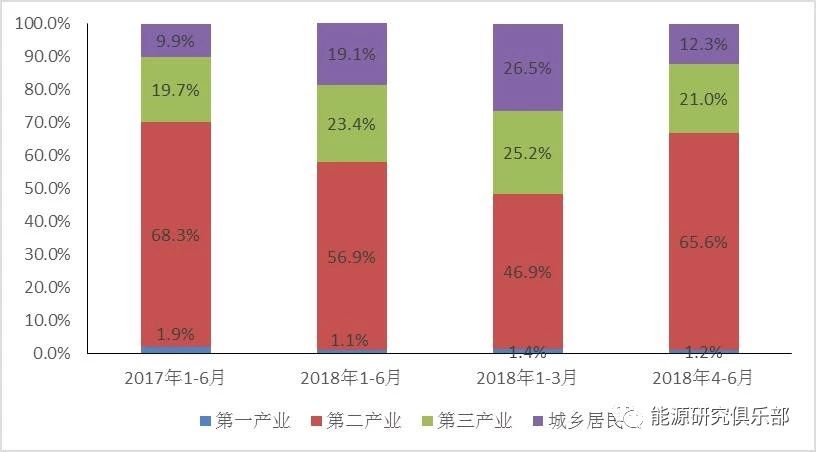 二产用电对全社会用电量增长的贡献率明显下降,但二季度反弹。上半年,三大产业用电量和城乡居民生活用电量的同比增速分别达到10.3%、7=.6%、14.7%、13◁▷.2%▪,对全社会用电量增长的贡献率分别为1.1%•▼▪、56.9%☆○、23◆◇□.4%、19•○.1%。相比去年,二产用电量贡献率下降约12个百分点,而第三产业和城乡居民生活对全社会用电量增长的拉动作用增强•,反映出电力需求的驱动力正在从二产拉动向三产和居民协同拉动转变,与我国经济结构优化的方向一致。但是,应该注意到,与一季度相比-,二季度二产用电量的贡献率由降转升△•,特别是制造业日均用电量扭转了3月的下降趋势,5、6月分别达到96▼○.6亿千瓦时/天和99.7亿千瓦时/天,连续两个月创历史新高,反映出制造业生产明显加快。