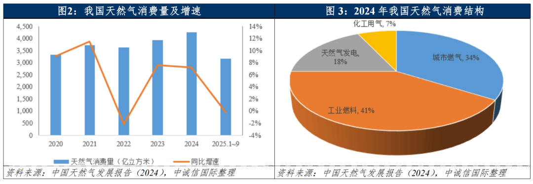 2025年以来我国经济展现强劲韧性,工业生产稳步增长且结构持续优化,天然气消费量保持相对稳定。2025年,全国天然气表观消费量4,265.5亿立方米1,同比微增0.1%。天然气在一次能源消费总量中占比8.8%,据中国石化经济技术研究院预计,未来天然气在能源消费结构中的占比还将持续提升。