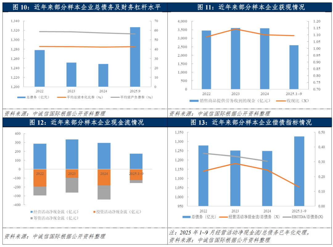●2025年以来受暖冬、工业需求阶段性偏弱等因素影响,全国天然气消费量呈微降态势,但顺价政策持续深化落实带动城燃企业盈利呈修复态势;行业整体财务杠杆水平保持相对稳健。预计2026年随着天然气市场化定价机制进一步完善,我国城市燃气企业盈利能力或将有所改善;部分企业仍有一定规模的投资支出;较强的经营获现能力对其偿债形成支撑。