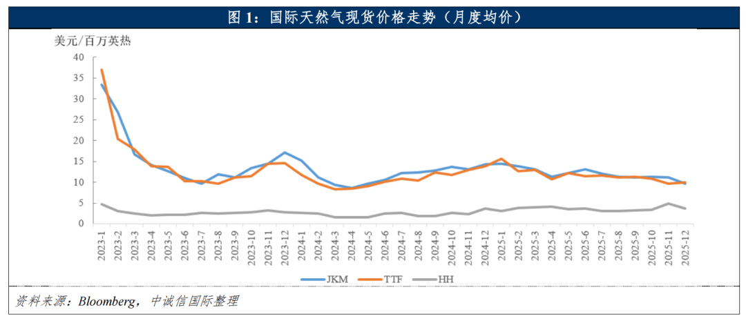 2025年全球天然气市场呈弱平衡态势,国际天然气价格走势相对平稳;展望2026年,全球市场将延续产能扩张周期,呈现“供应宽松主导、需求边际复苏、价格中枢下移”的核心格局,但地缘政治紧张、极端气候等不确定性因素犹存。